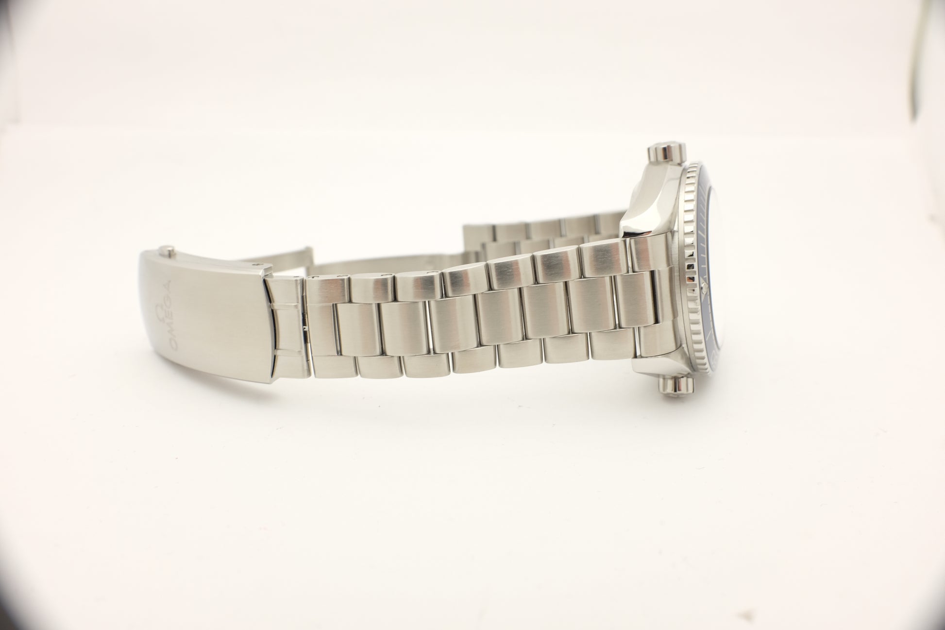 Strap/bracelet: Omega Stainless Steel brushed bracelet with a push button Foldover Clasp